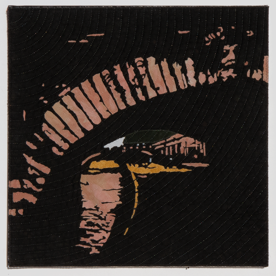 Hand dyed and painted commercial cotton fabric, polyester threads, cotton batting.